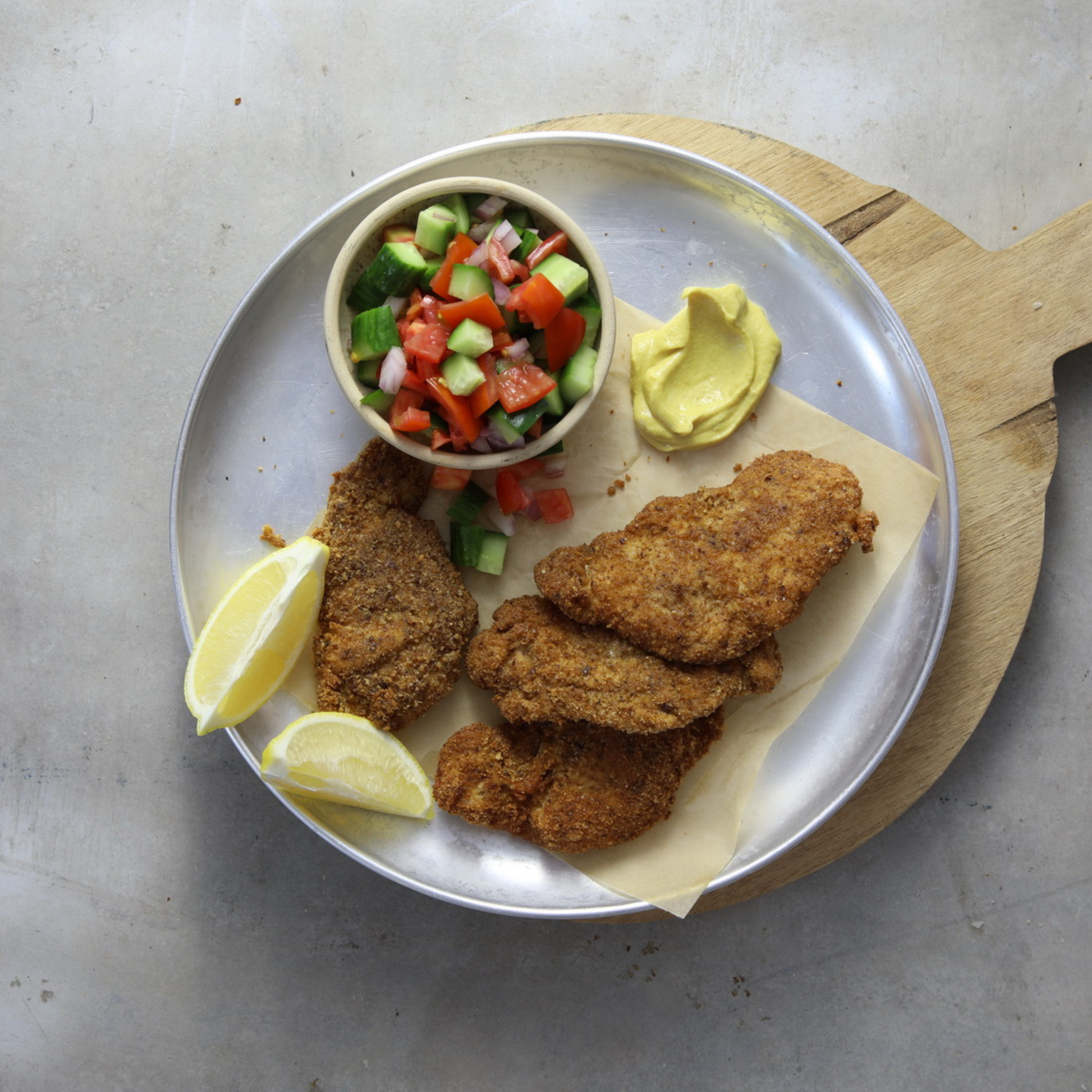 חלבונים צמחיים - 37% (חלבוני חיטה** וסויה ביחסים משתנים), שומן צמחי, קמח חיטת** כוסמין בהיר, סיבי עולש, שומשום, תבלינים, חומרי תפיחה (נתרן ואומוניה קרבונטים דיפוספטים), מלח שולחן, מתחלב: לציטין סויה, חומר לטיפול בקמח: נתרן מטא-ביסולפיט, מעכב חמצון: תמצית רוזמרין. **מכיל גלוטן